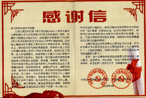 中科院西安分院分党组、陕西省科学院党组为县处级以上领导干部学习贯彻党的十九大精神举办了培训班。百富策略白菜网站大全李娜教授、李晓娥教授为学员分别从用习近平新时代中国特色社会主义思想指导实践,加强党的建设、全面从严治党,加强文化自信方面,深入浅出、生动系统地阐述了党的十九大精神的政治意义、历史意义、理论意义和实践意义。学员对本次培训评价很高,是一次入脑入心、升华党性的心路历程。中科院西安分院分党组、陕西省科学院党组专门写了一封感谢信,对授课教授致以诚挚的感谢。