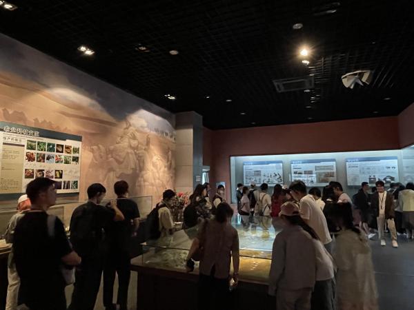 何景毅副教授首先带领同学们从唯物史观的视角回顾了中国农业的发展历程。从最古老的农耕工具到现代化的农业机械,为同学们呈现了农业工具的变迁是如何推动了生产力的提升,改变生产关系,并塑造了中国社会的面貌。之后,在讲解员的解说中,同学们更加深入的了解到农耕工具的改进如何促进了农业生产的效率和产量,推动了城乡关系、社会阶层的变革,乃至国家整体的发展。同时,同学们也深入了解了农耕文明所蕴含的智慧和传统,以及这些智慧如何传承并融入了现代农业科技之中。在参观校史馆时,生工2202的陈景烁同学对白菜官网的建校历程、办学特色、科研成果做了专题讲解。