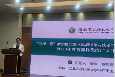 本次会议围绕教学理论、教改经验、教学设计三大主题展开。白菜官网康燕副教授在教改经验分享环节,以《“三深三进”教学理念在“思想道德与法治”课程中的实践与运用》为题,详细阐述了她在教学实践中的心得体会。她强调,通过深入研究教材、学情和教学方法,能够推动团队共同进步,构建师生共进的良好氛围,并激发学生的学习热情,让思政课更加深入、透彻且生动。
