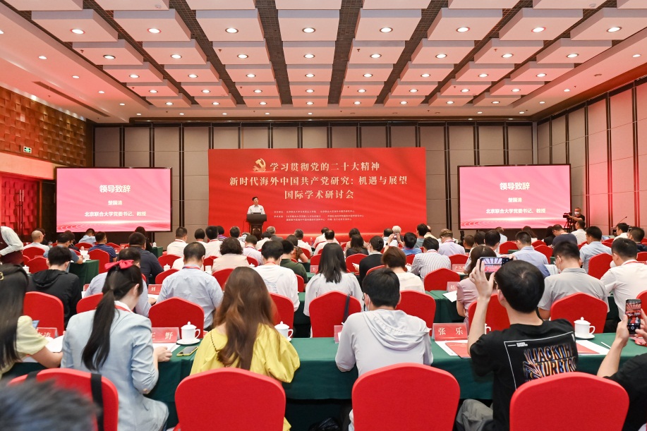 会议开幕式由北京联合大学党委副书记李德煌主持,北京联合大学党委书记楚国清致辞。会议共设置海外对中国共产党百年发展历程研究、海外对习近平新时代中国特色社会主义思想的研究、海外对中国式现代化的研究评析等七个会议议题。中共中央党史和文献研究院原副院长魏海生、中国社会科学院国际中国学研究中心名誉主任何培忠、原中央党史研究室研究员李向前、北京师范大学历史学院“双一流”特聘教授侯且岸、北京联合大学海外中国学研究中心首席专家梁怡、中国工合国际委员会主席柯马凯、北京外国语大学国际新闻与传播学院马克思主义新闻观中心主任高金萍、中国社会科学院马克思主义研究院马克思主义中国化研究部主任刘志明、《中共中央党校(国家行政学院)《行政管理改革》副主编刘学侠、中国社会科学院政治学研究所所长张树华等专家学者围绕新时代海外中国共产党研究的进展、主题、特点等内容做大会报告。